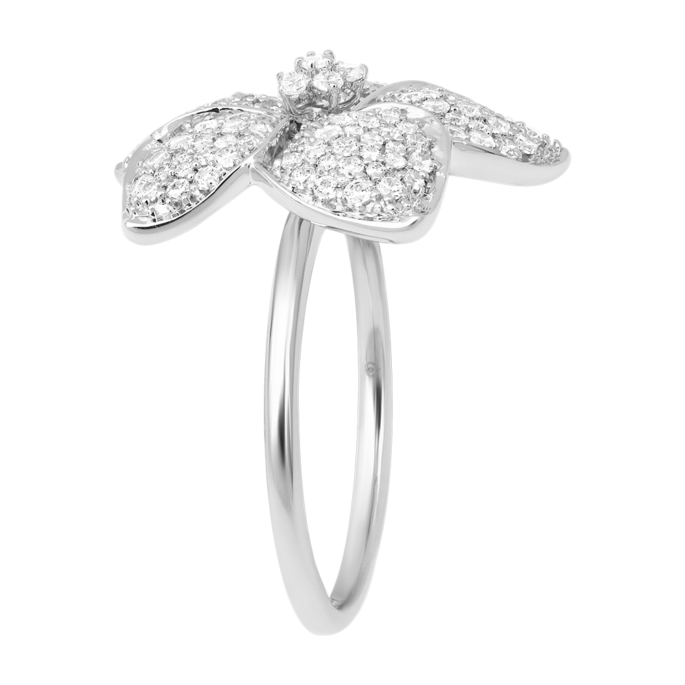 CRéATION DE L'ATELIER Nº 8Bague Fleurs - Or blanc 9 carats - Diamant synthétique ID : 1668