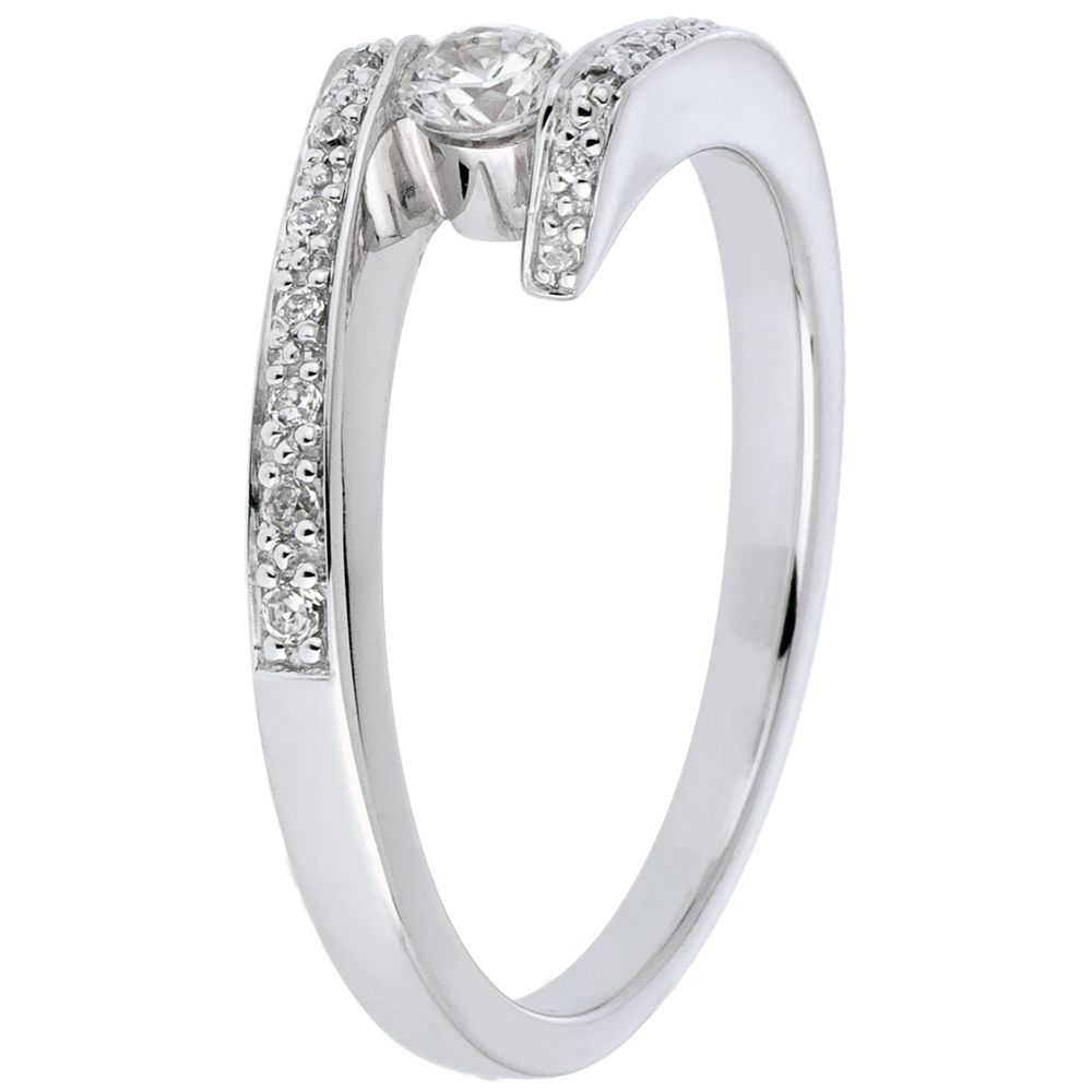 Bague Solitaire accompagné Nid Précieux - Promise - or blanc 18 carats - diamant 0.15 carat