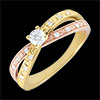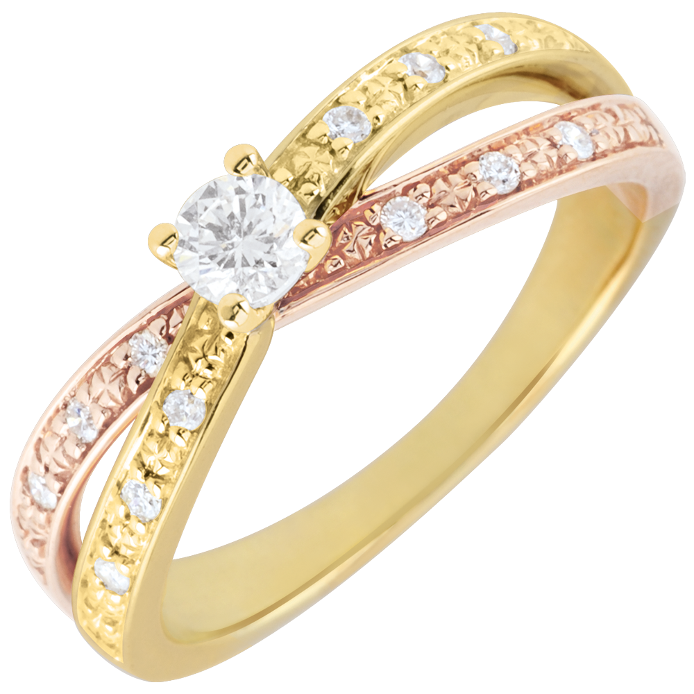 Bague Solitaire Saturne Duo double diamant - or jaune et or rose 9 carats - 0.15 carat