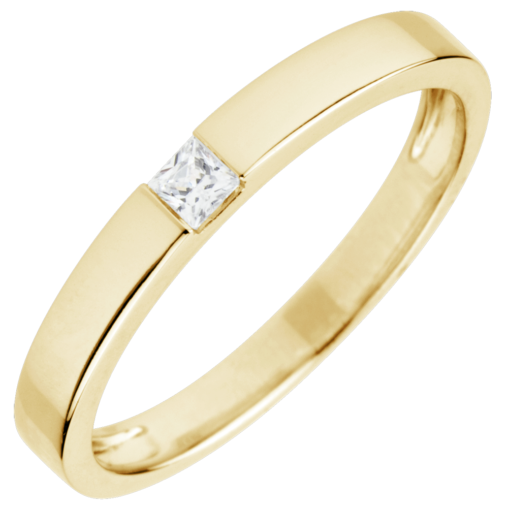 Bague Solitaire Epure - diamant Princesse 0.08 carats - or jaune 18 carats