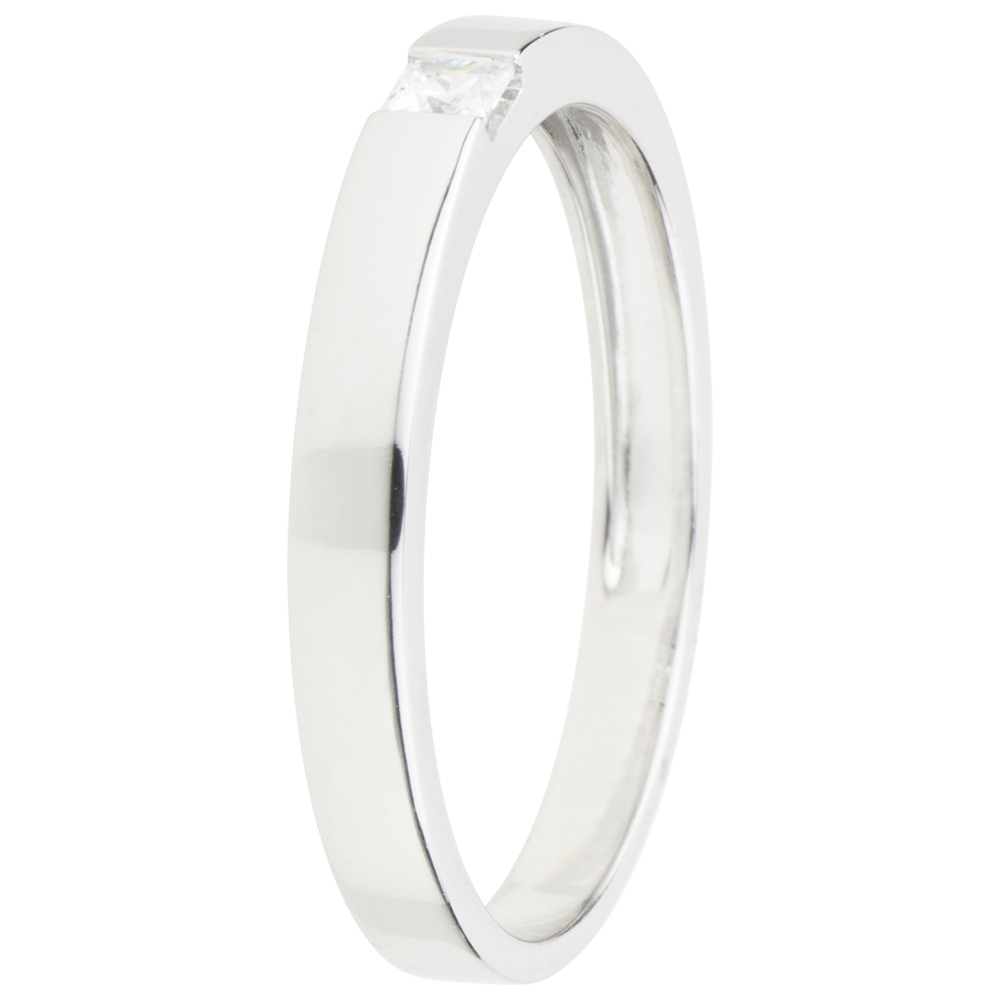 Bague Solitaire Epure - diamant Princesse 0.08 carat - or blanc 9 carats