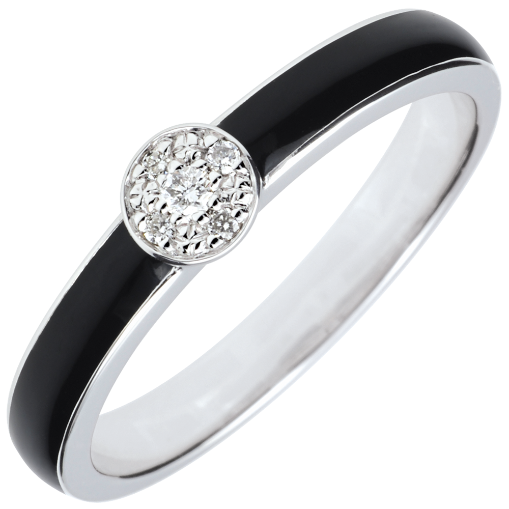 Bague Clair Obscur Solitaire - laque noire et Diamants 0.04 ct - or blanc 9 carats