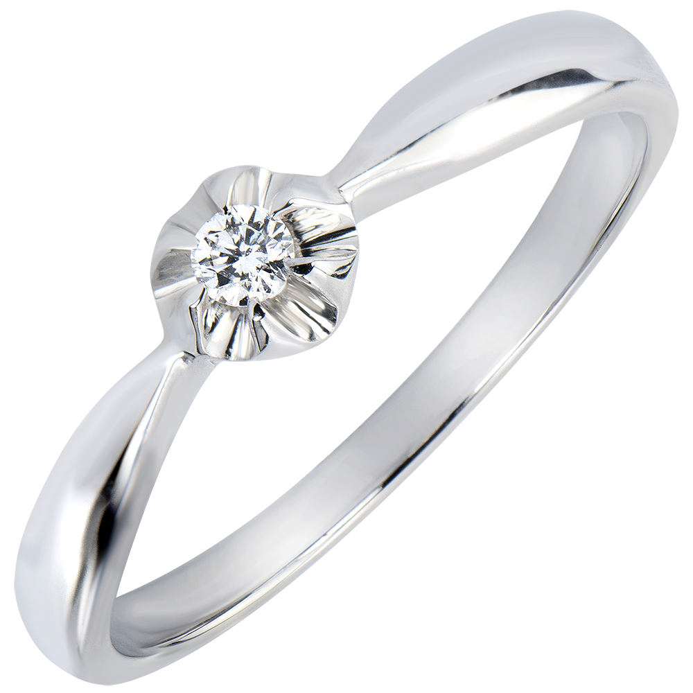 Bague Solitaire Fraicheur - Bouton d'Or - or blanc 18 carats et diamant