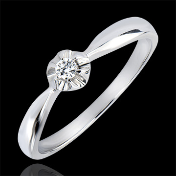 Bague Solitaire Fraicheur - Bouton d'Or - or blanc 9 carats et diamant