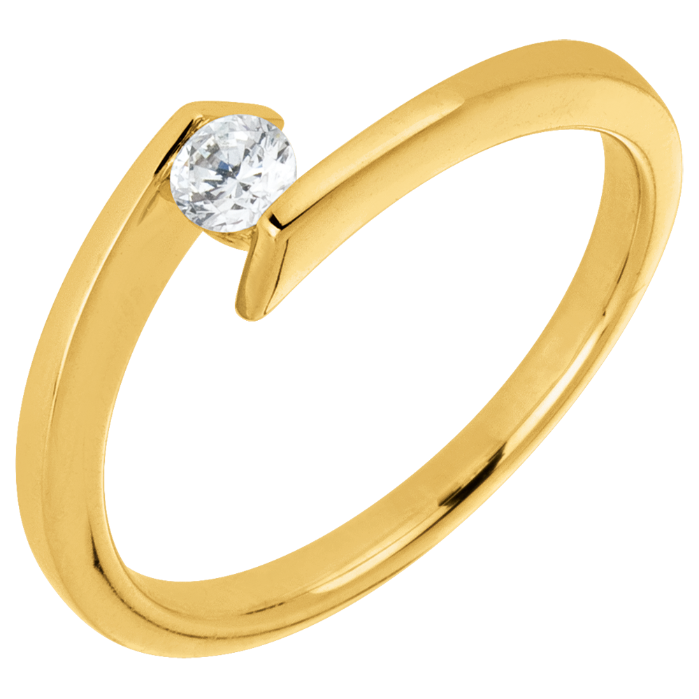 Bague solitaire Princesse étoile or jaune 9 carats - diamant 0.15 carat