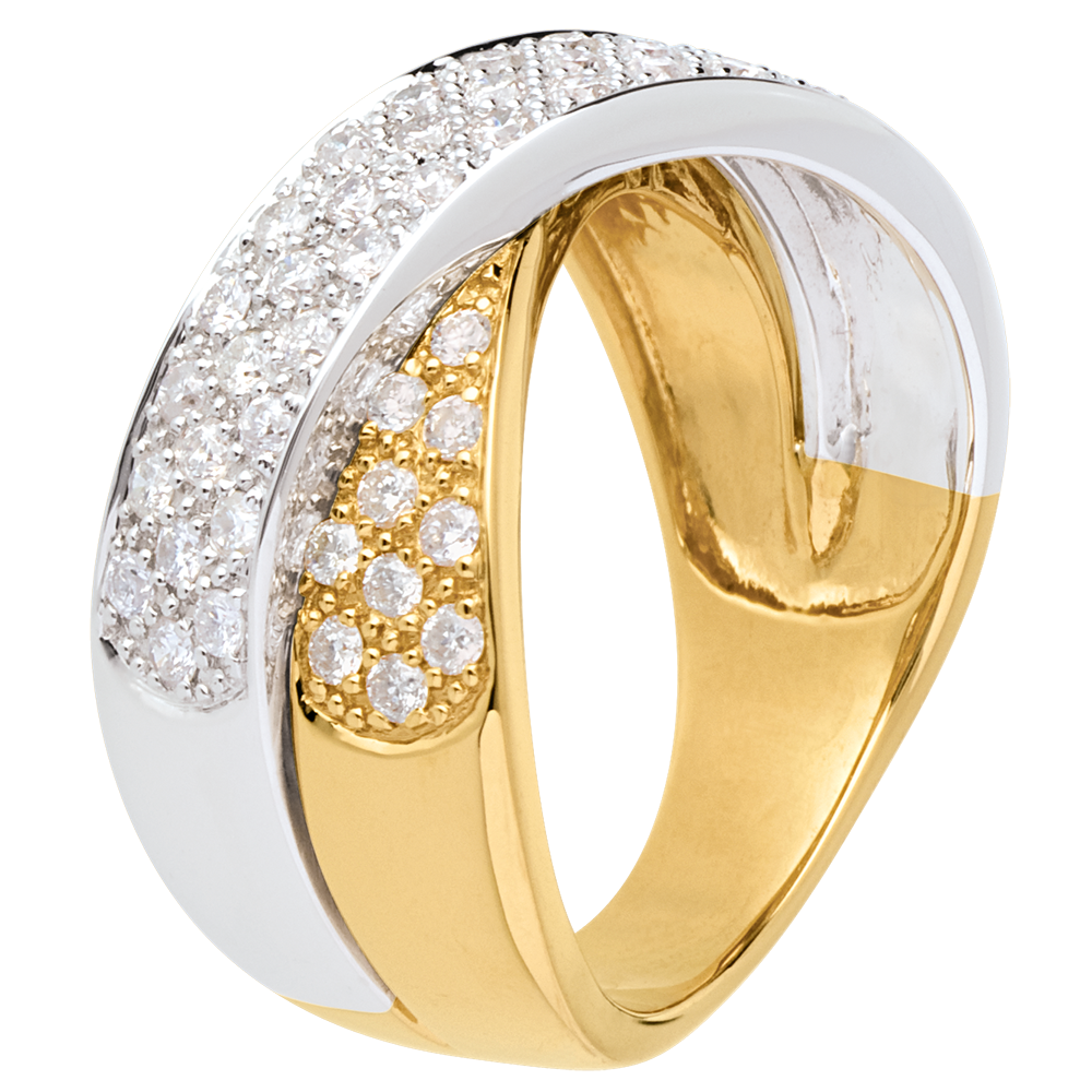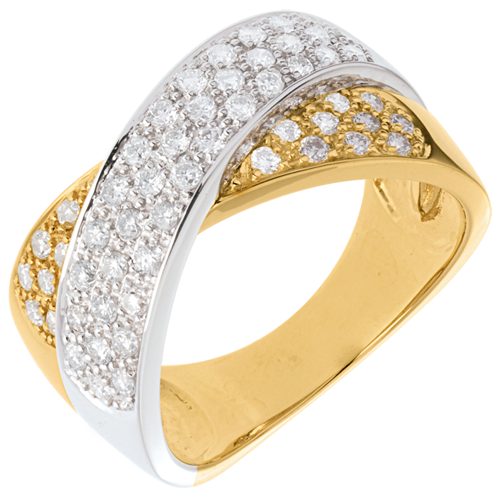 Bague tandem pavée - 0.8 carats - 57 diamants - or blanc et or jaune 18 carats
