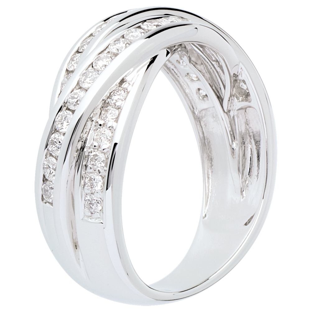Le tressage souple et délicat d'une monture tout en mouvement, avec un serti rail scintillant de 40 diamants.