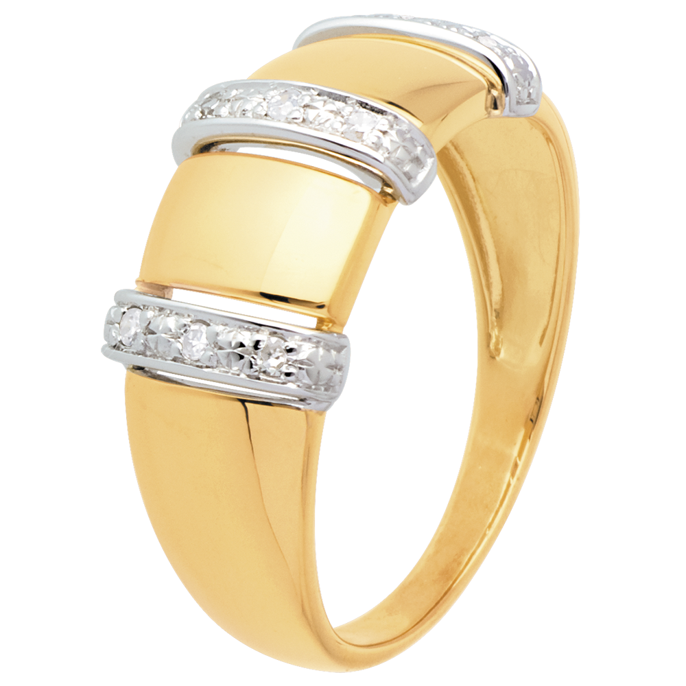 Bague triade or jaune 18 carats pavée - 9 diamants