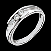 Une monture sobre et classique soulignée d'un double jonc délicatement ouvert sur une trilogie diamants