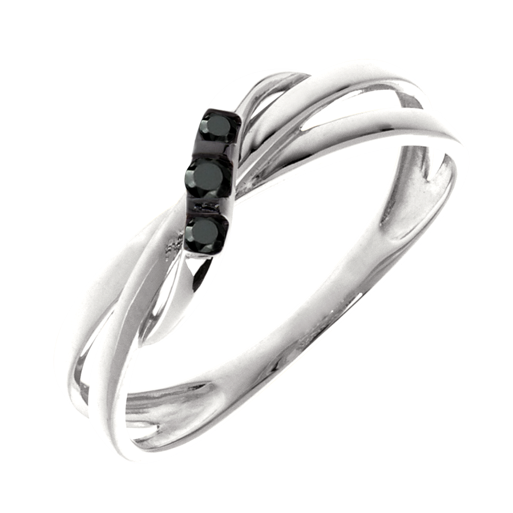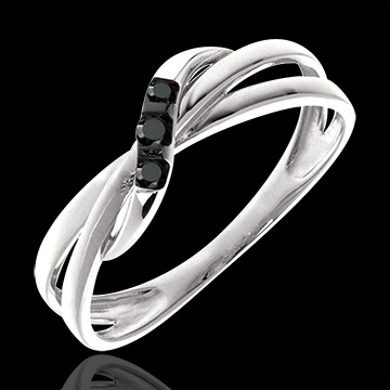 Bague trilogie cerceau diamants noirs - or blanc 18 carats
