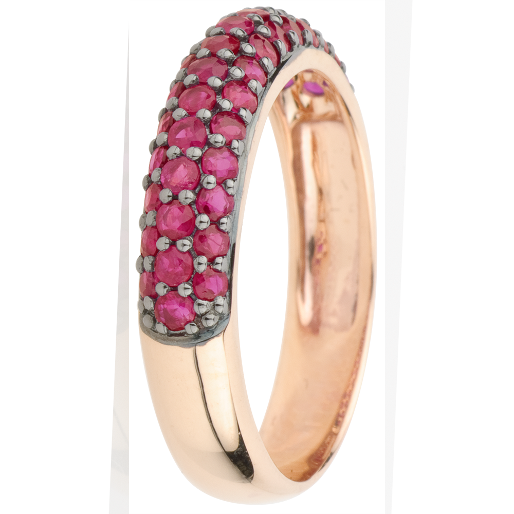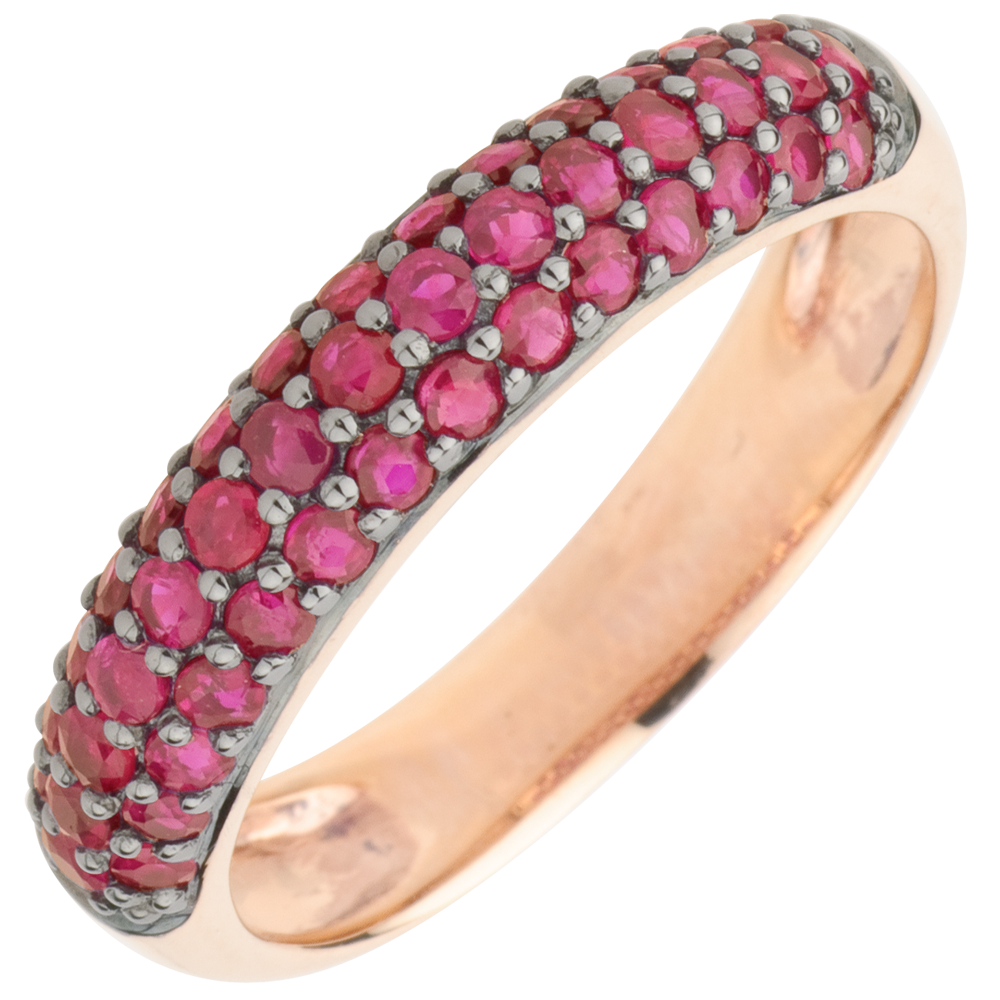 Bague Oiseau de Paradis - trois rangs - or rose 9 carats et rubis