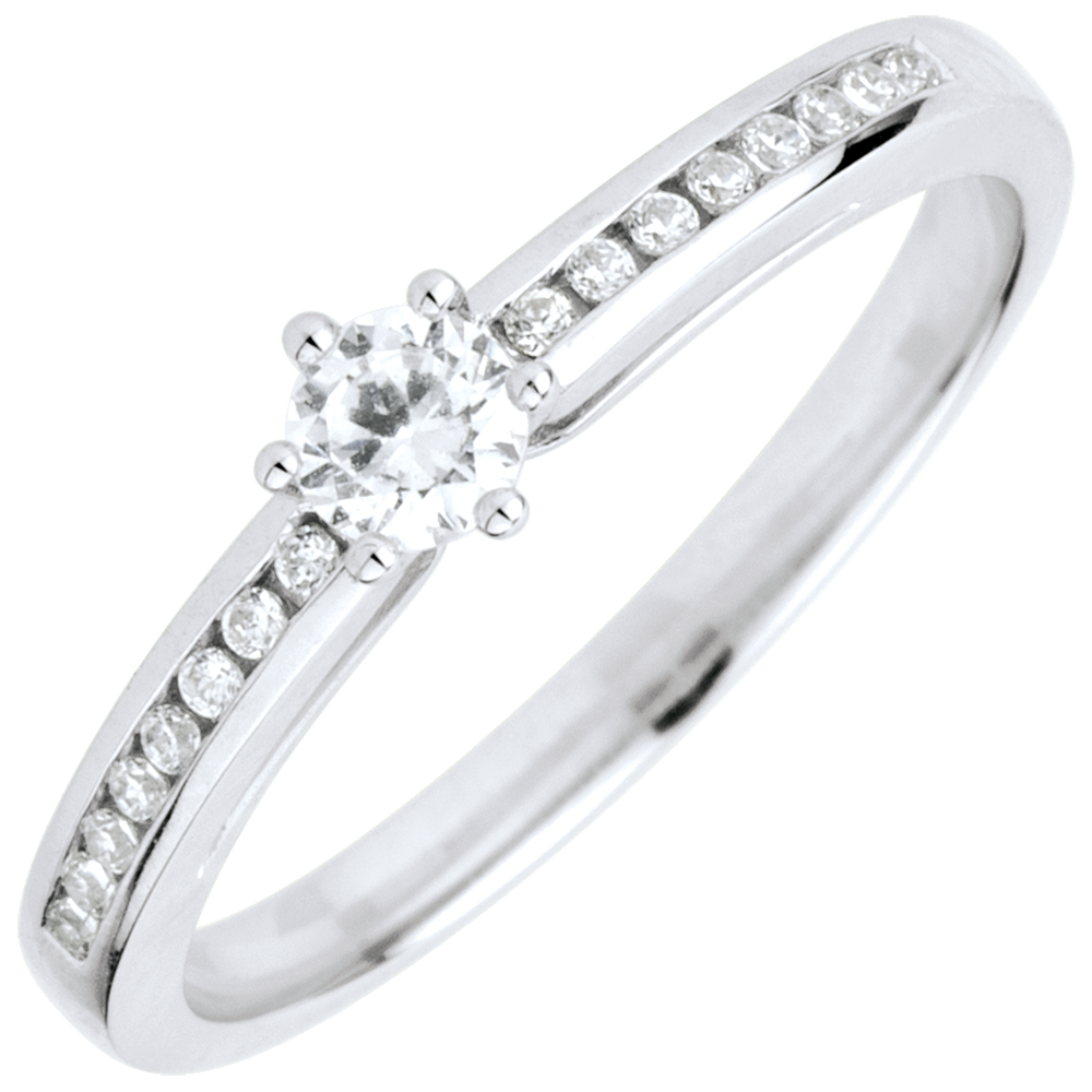 Bague Solitaire Divine 6 griffes - diamant 0.16 carat - or blanc 9 carats