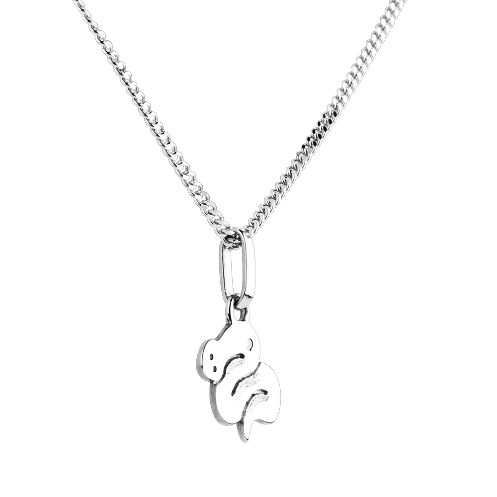 Ce pendentif en or blanc 18 carats met en scène un bébé serpent délicatement modelé, symbole de douceur et de premiers pas.