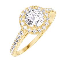 Bague Or jaune 18 carats - Diamant Rond 0.5 carat - Halo Diamant - Sertissage Diamant