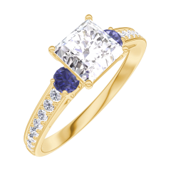 « L'ATELIER » Nº 184965Bague Or jaune 18 carats - Diamant synthétique Princesse 0.7 carat - Pierres de côté Saphir bleu - Sertissage Diamant synthétique