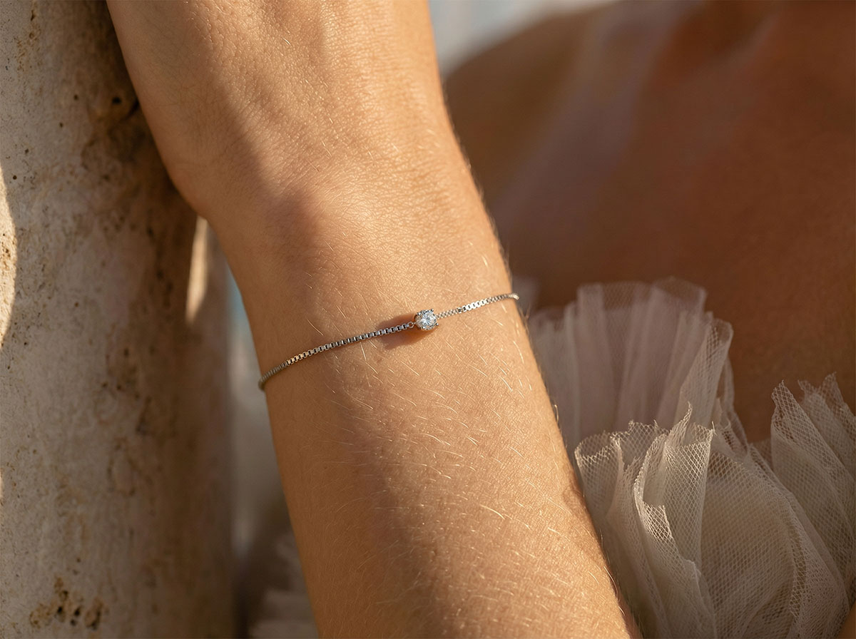 Léger avec un poids total minimum de 1.4 g, ce bijou se porte aisément au quotidien, sublimant chaque mouvement par sa finesse et sa luminosité. Un choix raffiné pour celles qui apprécient la simplicité sophistiquée.