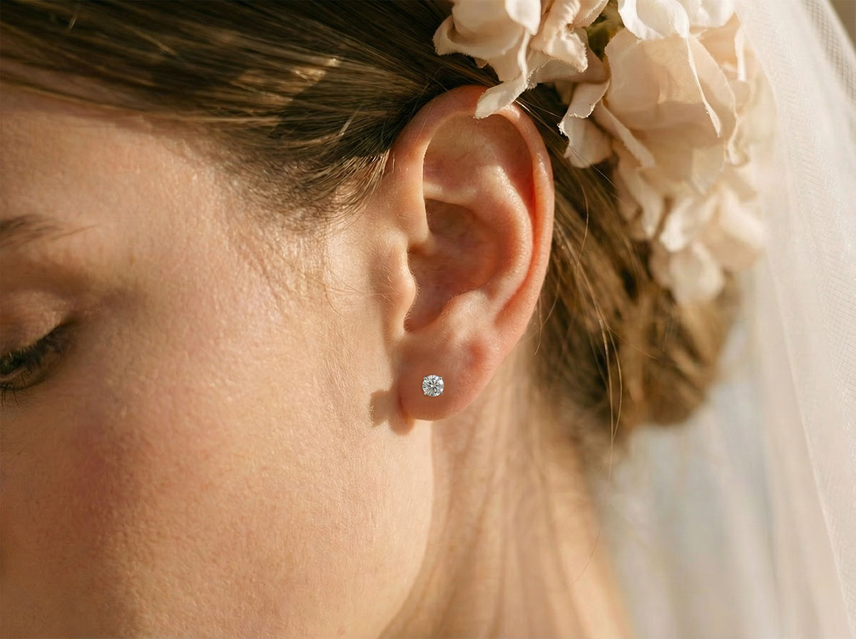 - Deux diamants synthétiques ronds totalisant 0,6 carat pour un éclat subtil