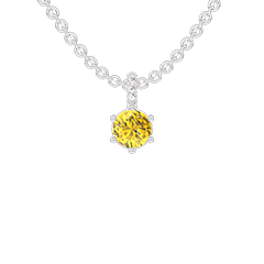 Pendentif Or blanc 18 carats - Saphir jaune Rond 0.3 carat - Sertissage Diamant - Chaîne Forçat