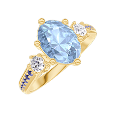 Bague Or jaune 18 carats - Topaze bleue Ovale 1 carat - Pierres de côté Diamant - Sertissage Saphir bleu