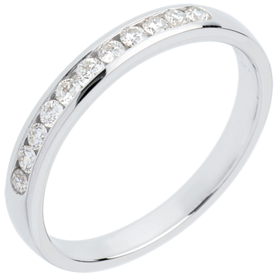 Alliance or blanc 18 carats semi pavée - serti rail - 11 diamants : 0.2 carats