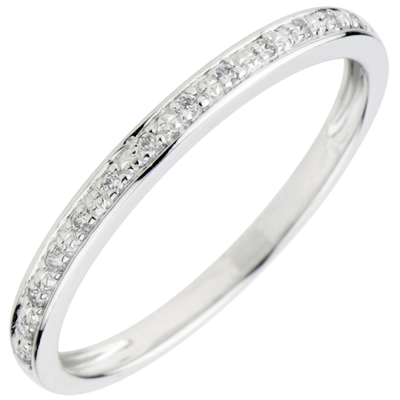 Une alliance or blanc sertie grain élégante et intemporelle. Cette alliance de mariage est idéale pour accompagner une bague de fiançailles ou bien se porter seule.