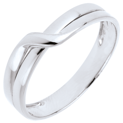 Un anneau d'or blanc est enlacé avec passion par un ruban
