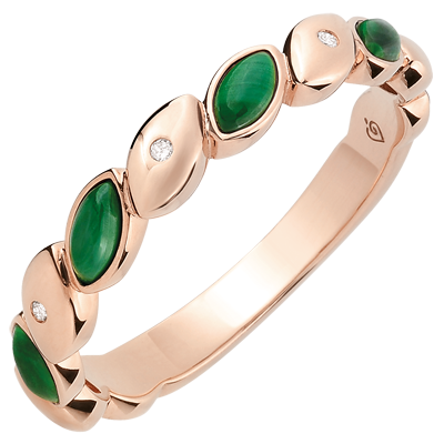 Alliance Félicité - Malachite et diamants - Or rose 9 carats