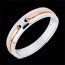 Deux lignes d'or rose s'unissent dans un anneau en or blanc 9 carats, symbolisant une promesse d'éternité. Ce design créatif incarne la complémentarité et l'engagement durable. Cette alliance mixte, élégante et sobre, convient aussi bien aux hommes qu'aux femmes, parfaite pour célébrer un mariage ou un engagement. La bague, d'un poids total minimum de 1,9 g, est gravable gratuitement, offrant une personnalisation unique à ce bijou précieux.… Voir plus Infos techniques