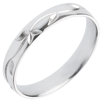 Alliance or blanc 18 carats Fraicheur - Lierre gravé - or blanc 18 carats