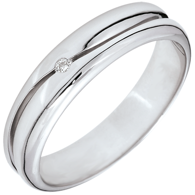 Bague Amour - Alliance homme or blanc 9 carats - diamant 0.022 carat
