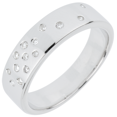 Une alliance en or blanc parsemée de diamants comme des étoiles.