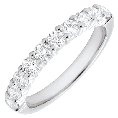 Alliance or blanc 18 carats semi pavée - serti griffes - 0.65 carats - 10 diamants