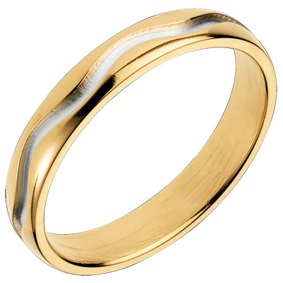 Un anneau d'or jaune sillonné par une une ligne sinusoïdale d'or blanc