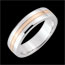 Cette alliance en or blanc est traversée par une bande en or rose pour un effet brillant et moderne.