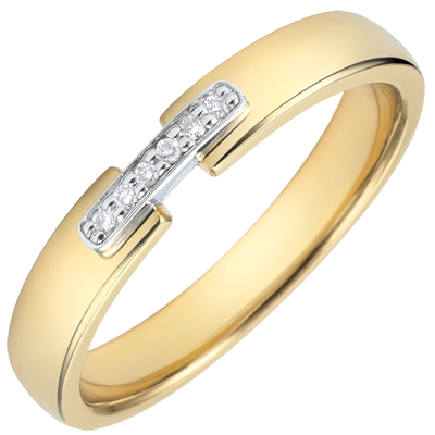 Quand un lien d'or blanc serti de diamants unie deux bras en un anneau d'or jaune.