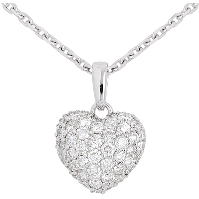 Pendentif coeur pavé or blanc 18 carats et belière - 0.67 carat - 50 diamants