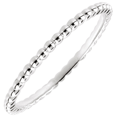 Une myriade de perles d'or blanc se succèdent pour former un anneau. Parfait pour une alliance originale et raffinée ou un anneau à porter seul, en plusieurs couleurs d'or ou à combiner à d'autres bagues.