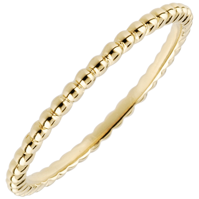 Une myriade de perles d'or jaune se succèdent pour former un anneau. Parfait pour une alliance originale et raffinée ou un anneau à porter seul, en plusieurs couleurs d'or ou à combiner à d'autres bagues. Or jaune (9 carats = 375/1000): 0.9 g. Plus dimensions