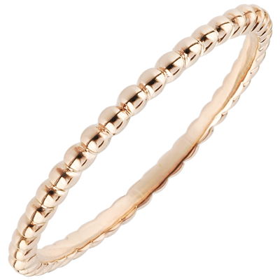 Une myriade de perles d'or rose se succèdent pour former un anneau. Parfait pour une alliance originale et raffinée ou un anneau à porter seul, en plusieurs couleurs d'or ou à combiner à d'autres bagues. Or rose (9 carats = 375/1000): 0.9 g. Plus dimensions