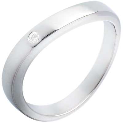 Un anneau courbé or blanc de section carrée, signé d'un diamant serti clos.