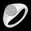 Cette chevalière en or blanc 18 carats présente un plateau ovale délicatement pavé de 50 diamants, totalisant 0,17 carat.