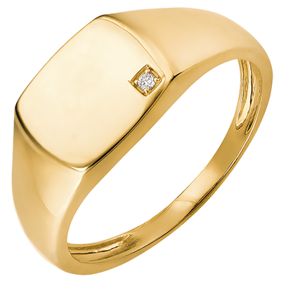 Une chevalière en or jaune, dont le plateau tonneau est serti d'un diamant étincelant.