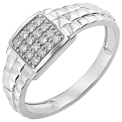 Bague Clair Obscur - Chevalière Mailles - or blanc 18 carats et diamants