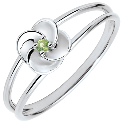 Bague Éclosion - Première Rose - or blanc 18 carats et péridot