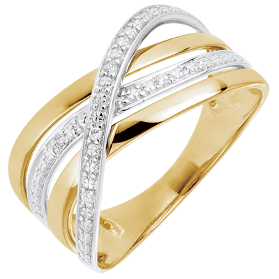 Bague Saturne Quadri or blanc et or jaune 9 carats
