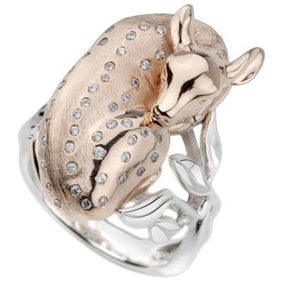 Bague Balade Imaginaire - Faon rêveur - diamants - or blanc et or rose 18 carats
