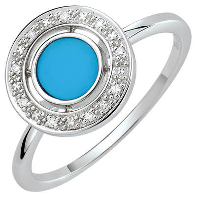 Bague Félicité - Turquoise et diamants - Or blanc 9 carats