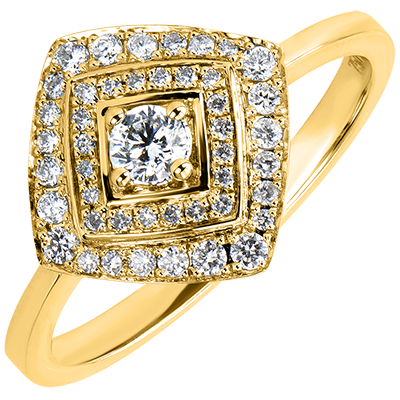 Bague de Fiançailles Destinée - Double Halo Géométrique - or jaune 18 carats et diamants