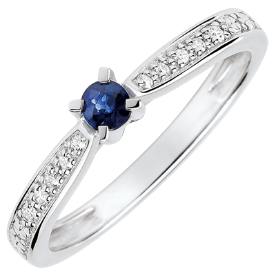 Bague de Fiançailles solitaire Garlane 4 griffes - saphir 0.14 carat et diamants - or blanc 18 carats