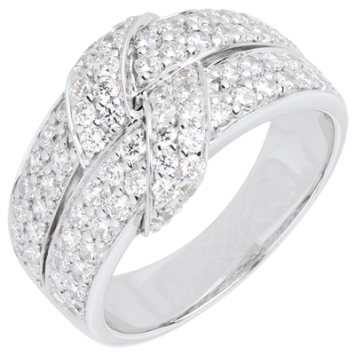 l'or blanc pavé de diamants s'enroule en lien précieux autour d'un anneau double
